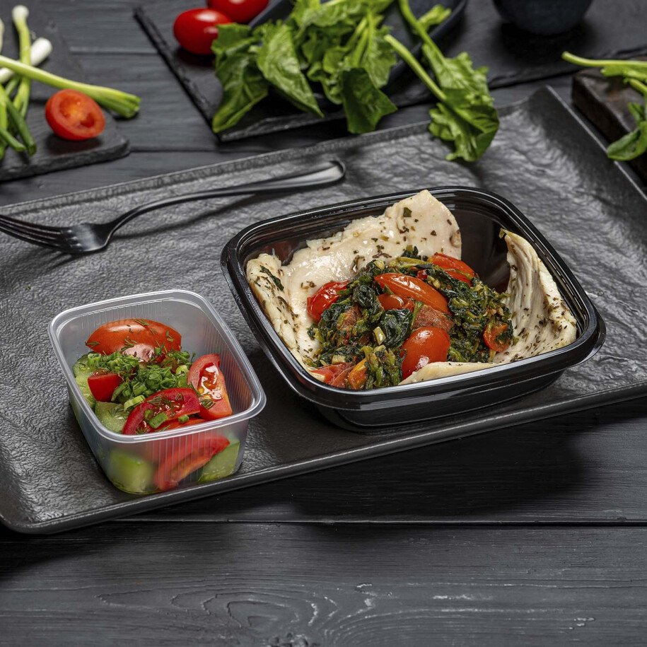 Куриное филе на пару с гарниром из шпината и закуска из свежих овощей