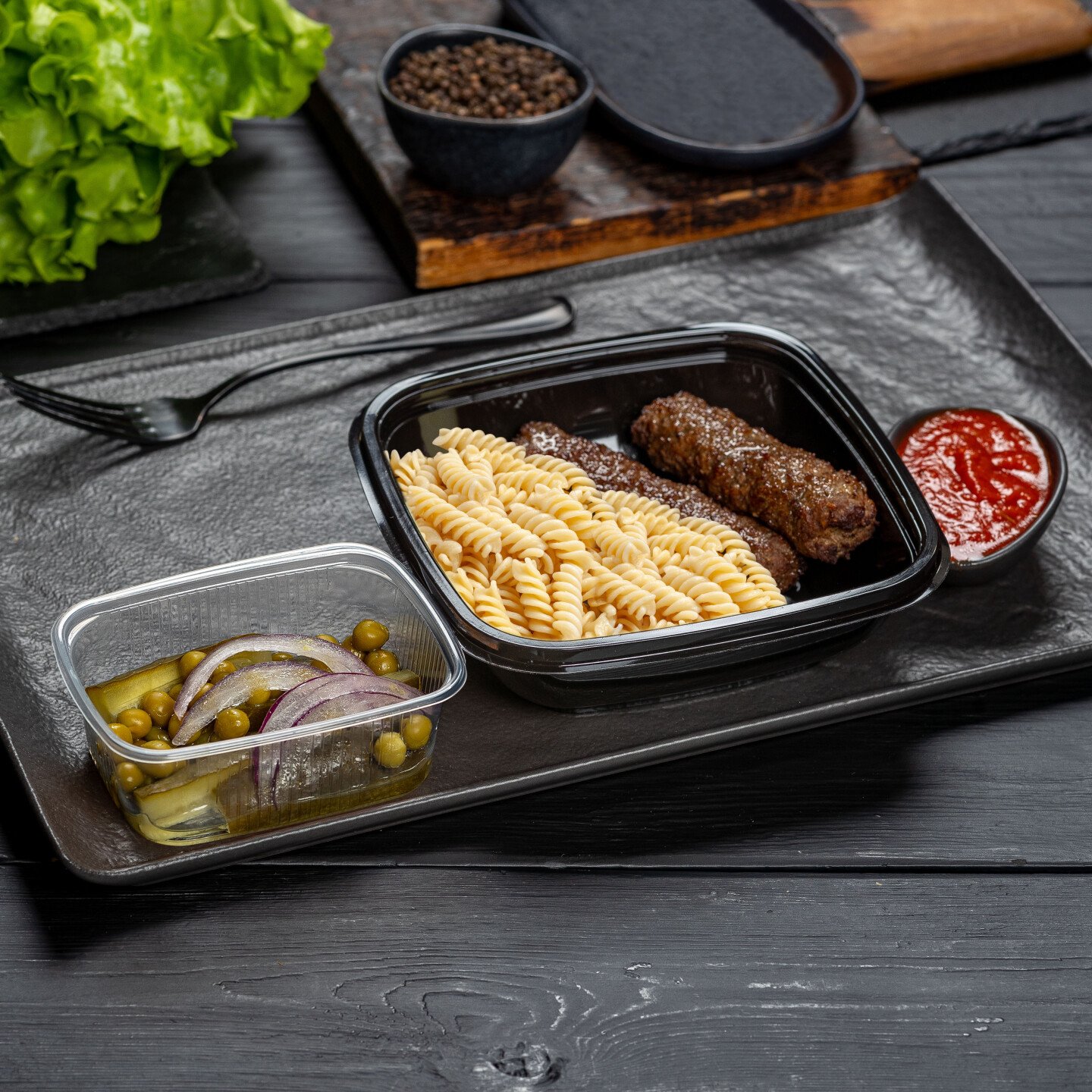 перец черный молотый, зира, кориандр), закуска из консервированных огурцов (огурцы консервированные, лук красный свеж., горошек консервированный, масло растительное); соус красный фирменный (паста томатная, помидоры свежие, саха-песок, масло растительное, помидоры черри, чеснок свежий)