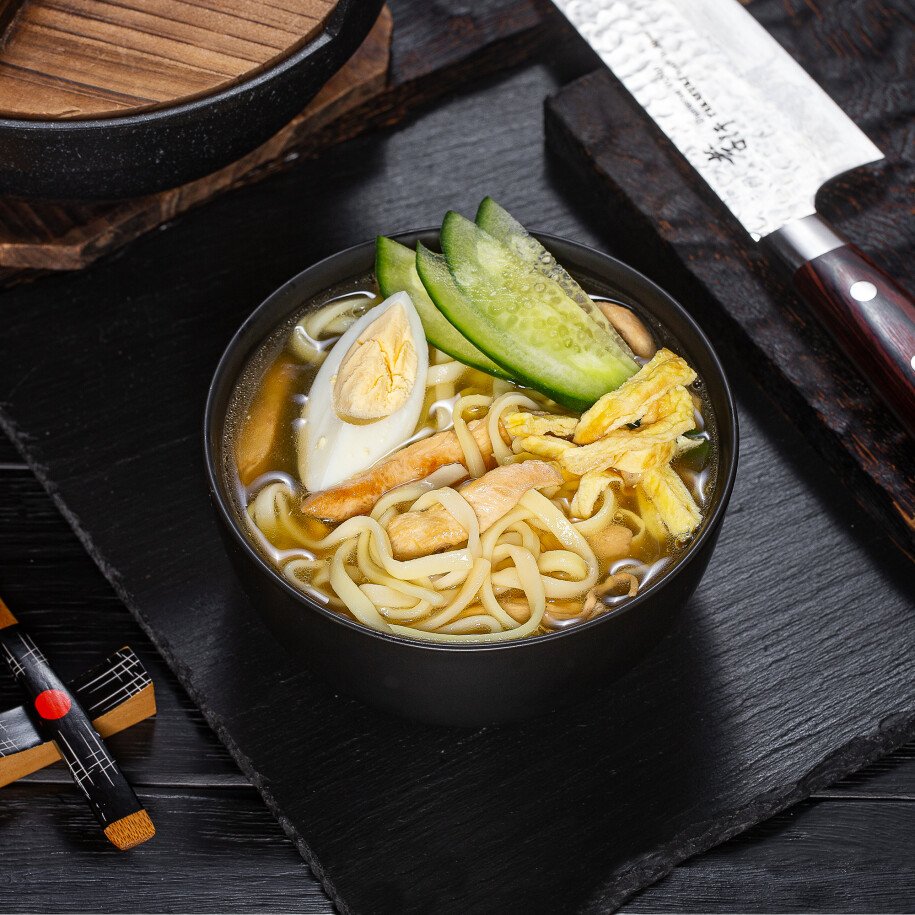Ароматный бульон с пшеничной лапшой, нежным куриным филе и традиционным японским блином. Это блюдо соединяет в себе насыщенные вкусы и классические японские традиции.