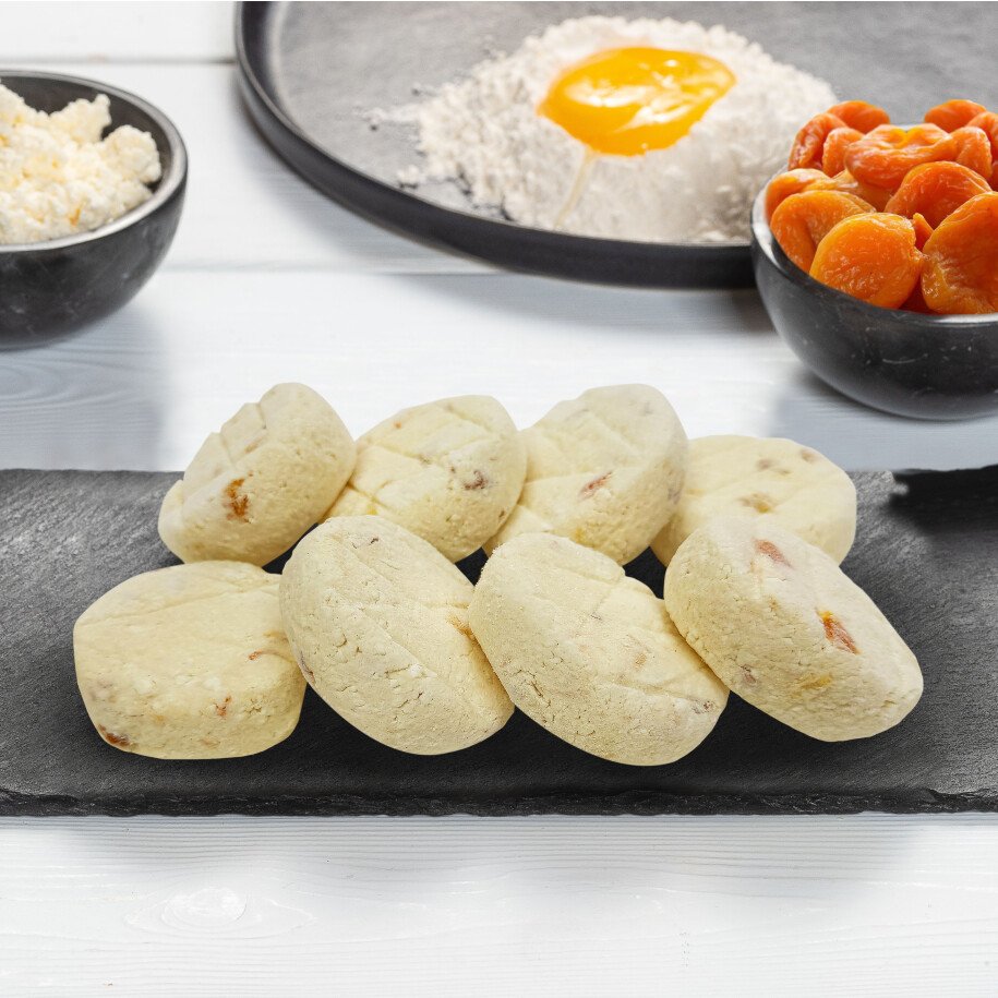 творог 5%, курага, яйцо куриное, сахар, мука в/с, ванилин
