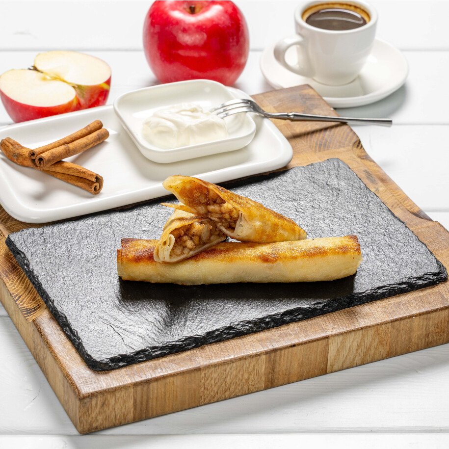 Ароматные десертные блинчики с изумительной начинкой из свежего яблока с добавлением корицы. Это идеальный завтрак или перекус, незабываемое дополнение к обеду или ужину.