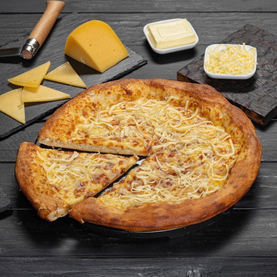 Особое сочетание трёх видов горячего сыра: твёрдого голландского с насыщенным пряным вкусом, ароматного сыра моцарелла и нежного плавленого сыра — придаёт этой пицце нежно-молочный вкус и аромат