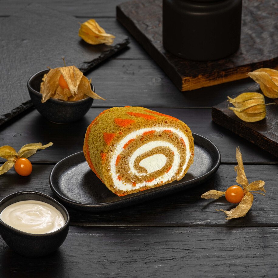 Кусочек нежнейшего морковного рулета со сметанным вкусом и лёгким ароматом ванили
