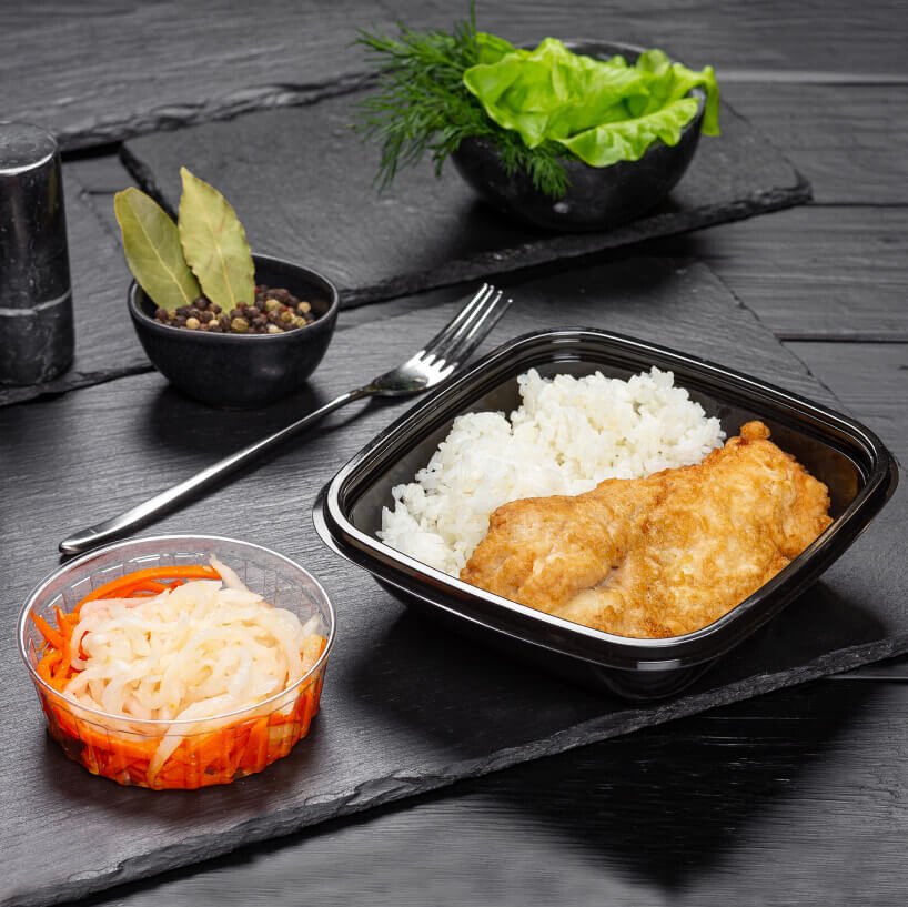 Куриное филе с нежным вкусом и мягкой текстурой, обжаренное в золотистом яичном кляре. Подаётся с ароматным рисом в качестве гарнира и легкой закуской из свежего дайкона.
