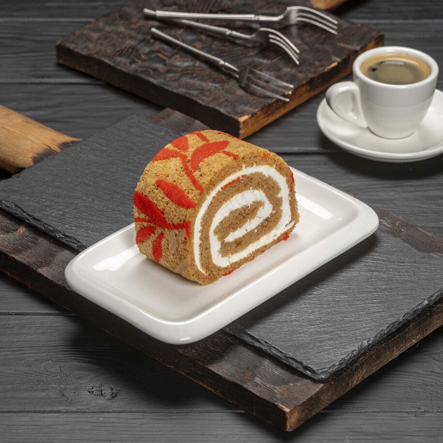 Кусочек нежнейшего морковного рулета со сметанным вкусом и лёгким ароматом ванили